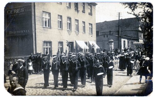 Widzę, że zniknęły podpisy pod zdjęciami?? 1. MDL Puck 03.Maj.1930 2. MDL Puck - jakaś uroczystość - z lat 1930-31 3. Puck - Boże Ciało 1930r - MDL pluton "honorowy" 4. Puck - Boże Ciało 1930r 5. Marynarze służby czynnej - ostatni (od lewej) Antoni Siudziński, pozostali jak na rewersie zdjęcia 6. rewers zdjęcia 5 7. MDL na manewrach w Gdyni - 1930-31 8. Orkiestra MW albo MDL na pomoście w Gdyni - 1930-31 Pozdrawiam. -