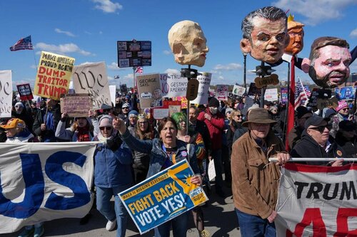 „No kings”: w Stanach Zjednoczonych odbywają się masowe protesty przeciwko polityce Trumpa Według doniesień z mediów akcje protestacyjne objęły wszystkie 50 stanów – zaplanowano ponad 3200 wydarzeń. Największe demonstracje odbywają się w Nowym Jorku, Los Angeles i Waszyngtonie. Podobno nowa fala protestów wywołana została przez operację militarną USA w Iranie, politykę imigracyjną administracji Trumpa oraz wzrost cen. W szczególności wzrosły ceny paliw, mieszkań i wielu towarów ze względu na nałożone cła. Organizatorzy twierdzą, że może to być największy jednodniowy pokojowy protest w historii Stanów Zjednoczonych. VID_20260328_221738_218.mp4