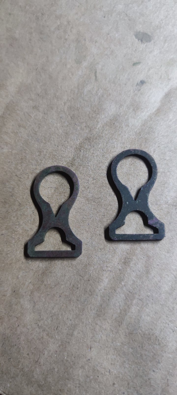 Witam, czy to jakieś elementy z wojskowej torby, chlebaka? Okres jaki bym sugerował to 1914r. Niemcy. Szerokość 2.1cm, długość 3.8cm.