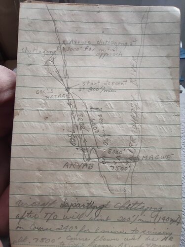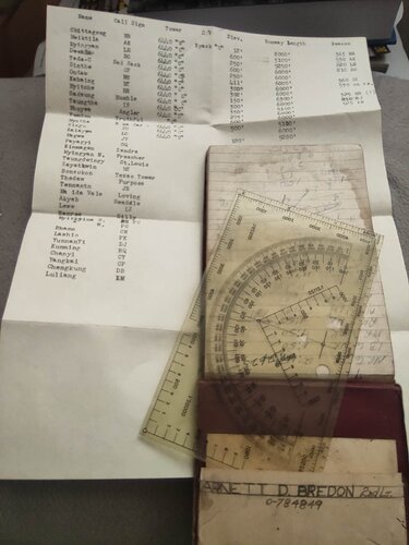 Jed, jeśli masz fioła na punkcie operacji specjalnych w Birmie, to podsyłam smaczek z mojej kolekcji. Ustrzeliłem na US eBay za marne grosze, bo nikt nie zwrócił uwagi na magiczne słowa w notatkach: Eureka, Beacon. Podpisany, więc identyfikacja właściciela jest jednoznaczna - 2nd Lt Arnett Bredon z 14th Combat Cargo Squadron. Arnet robił sporo kluczowych notatek o szczegółach podejścia do zrzutów itd. W komplecie kody lotnisk / lądowisk, linijka i na samym końcu chyba zobrazowanie marzeń, jakie miał zamiar spełnić po wojnie: plan domku (myśliwskiego?).