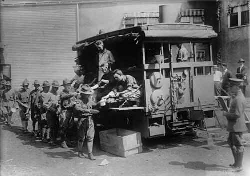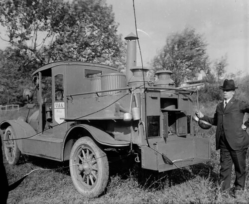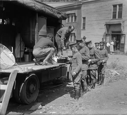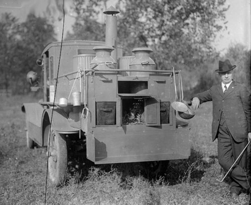 Teraz takie fotografie „na wszelki wypadek”, ponieważ: a) wciąż wychodzą jakieś fotografie kuchni polowych, jakie znalazły się na terenie II RP; b) pomocą żywnościową US Army i ARC po I w.ś. zostały objęte głównie Polska i Rumunia i w tych państwach wylądowały wszelkie możliwe amerykańskie kuchnie polowe; c) gdyby wyszły gdzieś kiedyś zdjęcia jakiejś kuchni polowej, przy której stoją polscy żołnierze, a typ kuchni byłby nieznany to zawsze można zajrzeć do tego wątku, żeby sprawdzić, czy żołnierze tacy przypadkiem nie stoją przy podarowanej Polsce kuchni amerykańskiej. Poniżej - kolejny typ amerykańskiej kuchni polowej z okresu I wojny światowej.