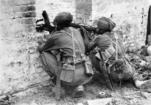 Amerykanom „nie przelewało się”, jeśli chodzi o maczety na froncie CBI, niemniej podzielili się nimi z Commonwealthem. Poniżej żołnierze indyjskiej 19. Dywizji Piechoty podczas bitwy o Fort Dufferin w Birmie. Obaj indyjscy żołnierze mają amerykańskie maczety M1942, jakie pokazałem powyżej. -
