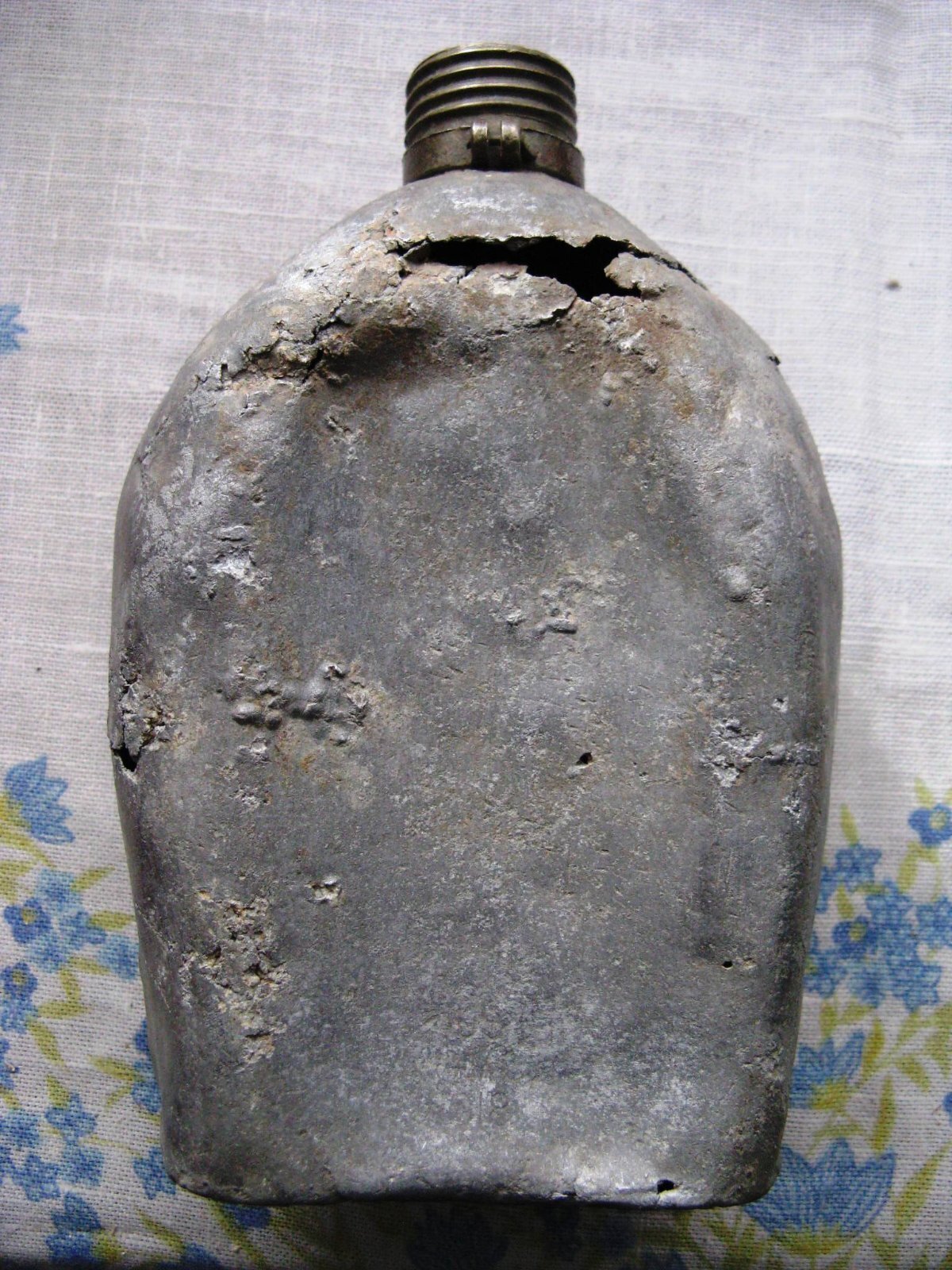Bardzo dziękuję za ciekawe zdjęcia. Świetne. Mamy na nich przedstawicieli firm Aluminum Goods Manufacturing Company oraz Aluminum Company of America. Poniższe zdjęcie jest bardzo ciekawe. Pokazuje ono, jak bardzo w tamtych czasach aluminium wciąż raczkowało w sensie nieustannych kombinacji ze składnikami stopu i ich procentowymi udziałami. Te pięć pierwszych typów manierek M1910, jakie opisałem powyżej, cechuje się bardzo zróżnicowaną jakością materiału. Mam na przykład manierkę firmy The J.W. Brown Manufacturing Company, która przeleżała w wodzie co najmniej pół wieku, jak nie więcej i jest w stanie idealnym, a - jak widać - są i takie manierki, jak poniżej, które są destruktami. Ale zawsze tak było w USA, gdy wybuchała wojna światowa. Kontrola jakości szła wtedy w odstawkę, aby tylko naprodukować jak najwięcej przedmiotów dla wojska. Mam manierkę M1910 z roku 1942, która nigdy nie leżała w ziemi, a ma dziury od korozji na wylot. Wiadomo - po Pearl Harbor natychmiast był dramat z metalami w USA, w tym z aluminium, i produkowało się z byle czego. Niemniej większość stanowiły manierki z porządnego aluminium, a jak do aluminium dobierano pozostałe pięć składników stopowych to już dzisiaj nikt tego nie stwierdzi.