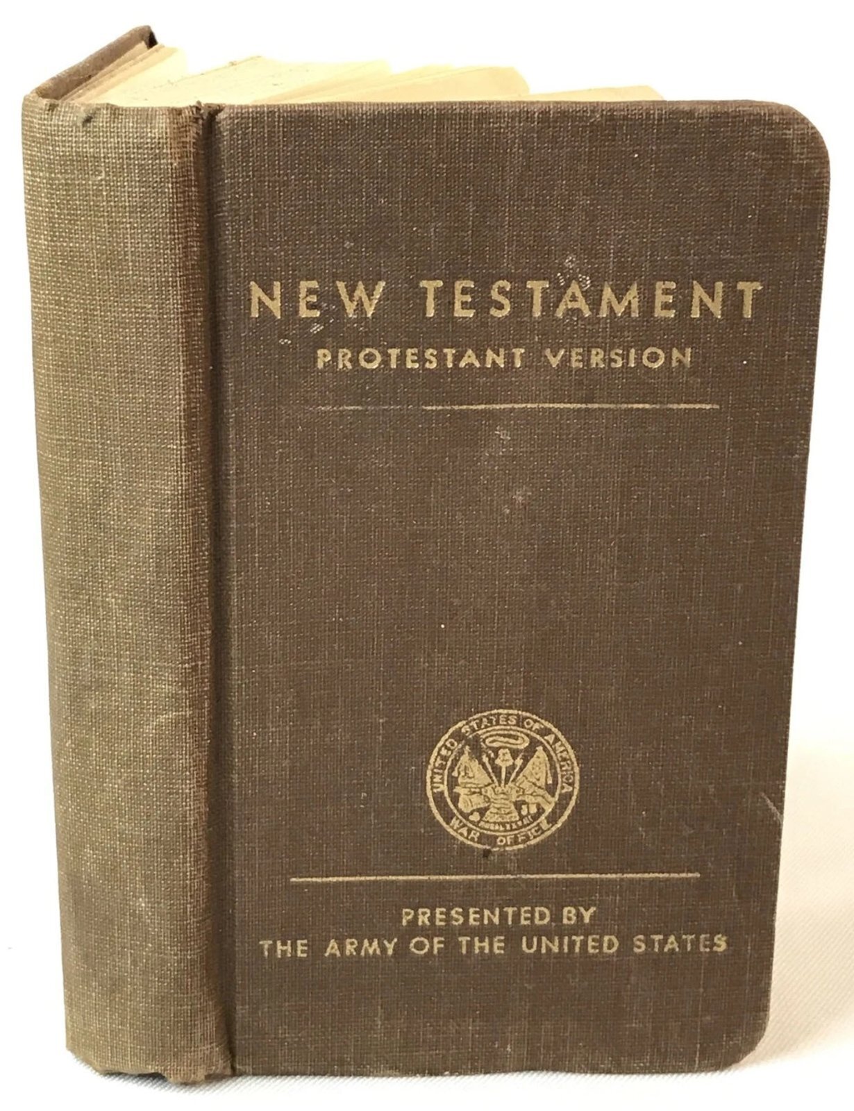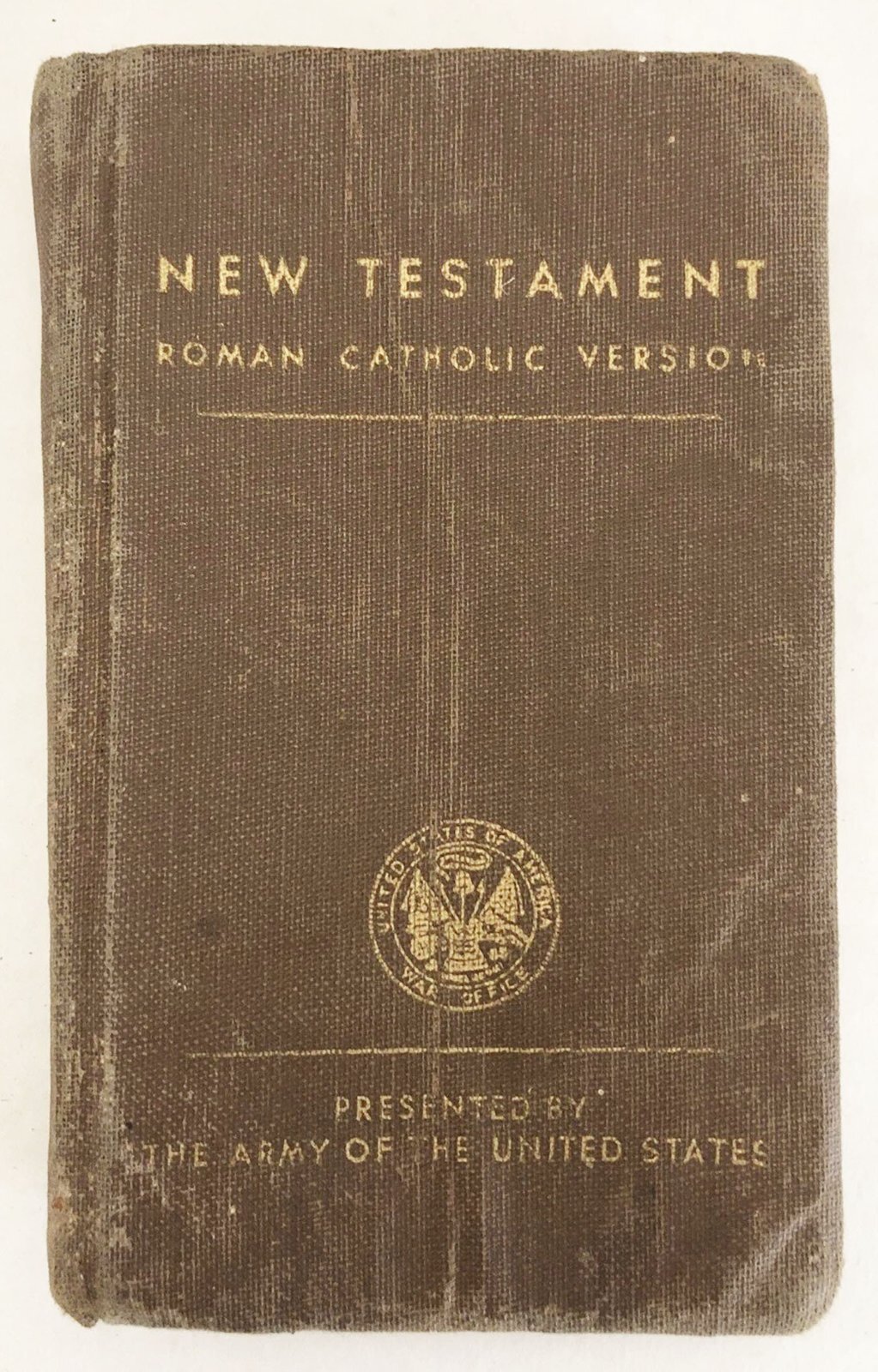 Gdzieś mi wcięło zdjęcie standardowej walizki kapelana-spadochroniarza drugowojennej US Army i tejże walizki wyposażenia, niemniej postać księdza Andrejewskiego jest dobrą okazją do pokazania tego, jak amerykańskie państwo przygotowało się do wojny od strony wsparcia duchowego dla żołnierzy. Bo nie było tak, że żeby czuć więź z jakimś wyznaniem i religią to każdy musiał zabrać z domu coś z podstawowych dewocjonaliów noszonych na szyi czy w kieszeni. Oczywiście można to było zrobić i nie było to zabronione. Z drugiej strony amerykańskie władze wojskowe dużo z takich spraw wzięły na siebie i nieźle dały zarobić drukarzom oraz grawerom-medalierom, którzy masowo produkowali ściśle określone dewocjonalia wojskowe. Po kolei część z nich będę pokazywał. Poniżej drugowojenny Nowy Testament w wersjach rzymskokatolickiej i protestanckiej wydrukowane na zlecenie US Army. Kto z żołnierzy chciał ten mógł go dostać.