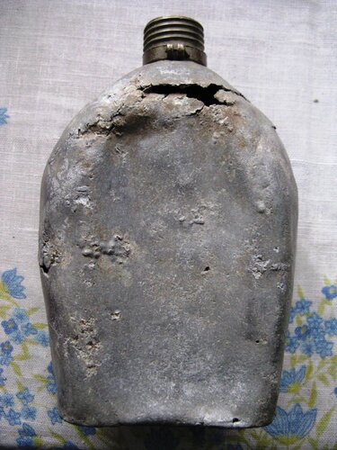PS Przy oferowaniu tej manierki na sprzedaż rdzą nie przejmowałbym się, bo najwięcej jest jej na łańcuszku od zakrętki, ale to jest klasyka tych manierek. Mądrzy nabywcy dobrze będą o tym wiedzieli. II wojna światowa to nie I, gdy te łańcuszki były z eleganckiego nowego srebra, które do dziś jest w pięknym stanie, czy nawet w idealnym. Podczas II wojny w USA obowiązywała rygorystyczna reglamentacja nowego srebra i do byle czego nie przyznawano tego materiału producentom różnych rzeczy. W związku z tym sama manierka CRS jest z wysokogatunkowej stali nierdzewnej, ale łańcuszek jest z najpodlejszej (surowej, nieoksydowanej, niecynkowanej, niekadmowanej) stali wysokowęglowej kompletnie nieodpornej na korozję. Tak to wtedy było. -