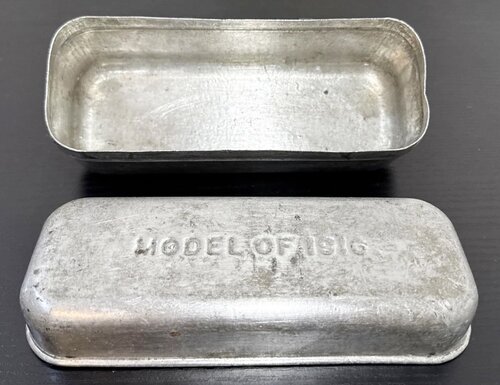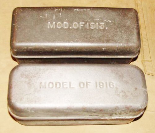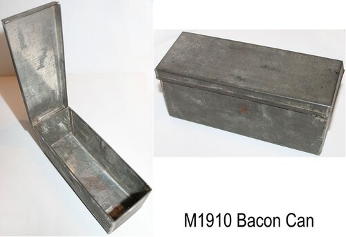 Kolejny przedmiot, jaki zasilił torby i plecaki polskiego międzywojennego żołnierza to trzy wzory amerykańskich pojemników na żywność, czyli „Bacon Cans”. Teoretycznie zwały się „puszkami na bekon”, czy na boczek, jak ktoś woli, ale de facto były puszkami na wszystko, co było do jedzenia. Mam sygnały, że takie puszki też się w Polsce wykopuje zatem można zakładać, że WP II RP otrzymało dziesiątki, jeśli nie setki tysięcy tych puszek, tym bardziej, że Amerykanie rzadko kiedy je z Francji zabierali ze ściśle określonego powodu, a było wówczas amerykańskiego wojska we Francji ponad 2 miliony ludzi i każdy musiał mieć którąś z tych puszek. Puszki z cienkiej ocynkowanej stali istniały w trzech wzorach mówiących jednocześnie o latach ich opracowania – M1910, M1913 i M1916. Zaprojektowano te puszki po to, aby wojsko przestało śmierdzieć, mówiąc bez ogródek, i żeby nadać żywności jakieś minimum czystości i trwałości. Przed wprowadzeniem tych puszek amerykański żołnierz otrzymywał od państwa płócienny woreczek na żywność, a on szybko zaczynał albo przemakać, albo jedzenie w nim miażdżyło się, albo jedno i drugie i robiła się z tego śmierdząca masa. W sensie użytkowym żywot wszystkich wzorów puszek był bardzo krótki. Od sierpnia 1918 roku zaczęto te puszki wycofywać z amerykańskich sił zbrojnych. Nadchodziła w USA era innej logistyki, innych opakowań wojskowych racji żywnościowych, a w związku z tym era bardzo krótkiego przebywania racji u żołnierza i dostarczania mu kolejnych świeżych. Żołnierz miał przestać być magazynierem żywności w niehermetycznej puszce na dodatek z niezdrowym ocynkowaniem. I dlatego setki tysięcy tych puszek były do wzięcia po bazujących we Francji American Expeditionary Forces.