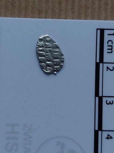 Witam, znalazłem ostatnio na swoich zgodach malutką srebrną monetę tzw. carską łezkę. Jednak mam problem z jej dokładną identyfikacją. Na czeskim forum zasugerowano, że może być to denga z okresu panowania Iwana IV Groźnego (1533-1584), czy słusznie? Waga monetki to 0,25g. Dengi miały wagę 0,2g oraz 0,34g, kopiejki 0,68g a połuszki 0,17g. Zatem moja monetka najbardziej pasuje do dengi. Na jednej ze stron jest Św. Jerzy na koniu z włócznią. Na drugiej opis cyrylicą, którego nie jestem w stanie odczytać. Prośba o potwierdzenie datowania i pochodzenia monety.