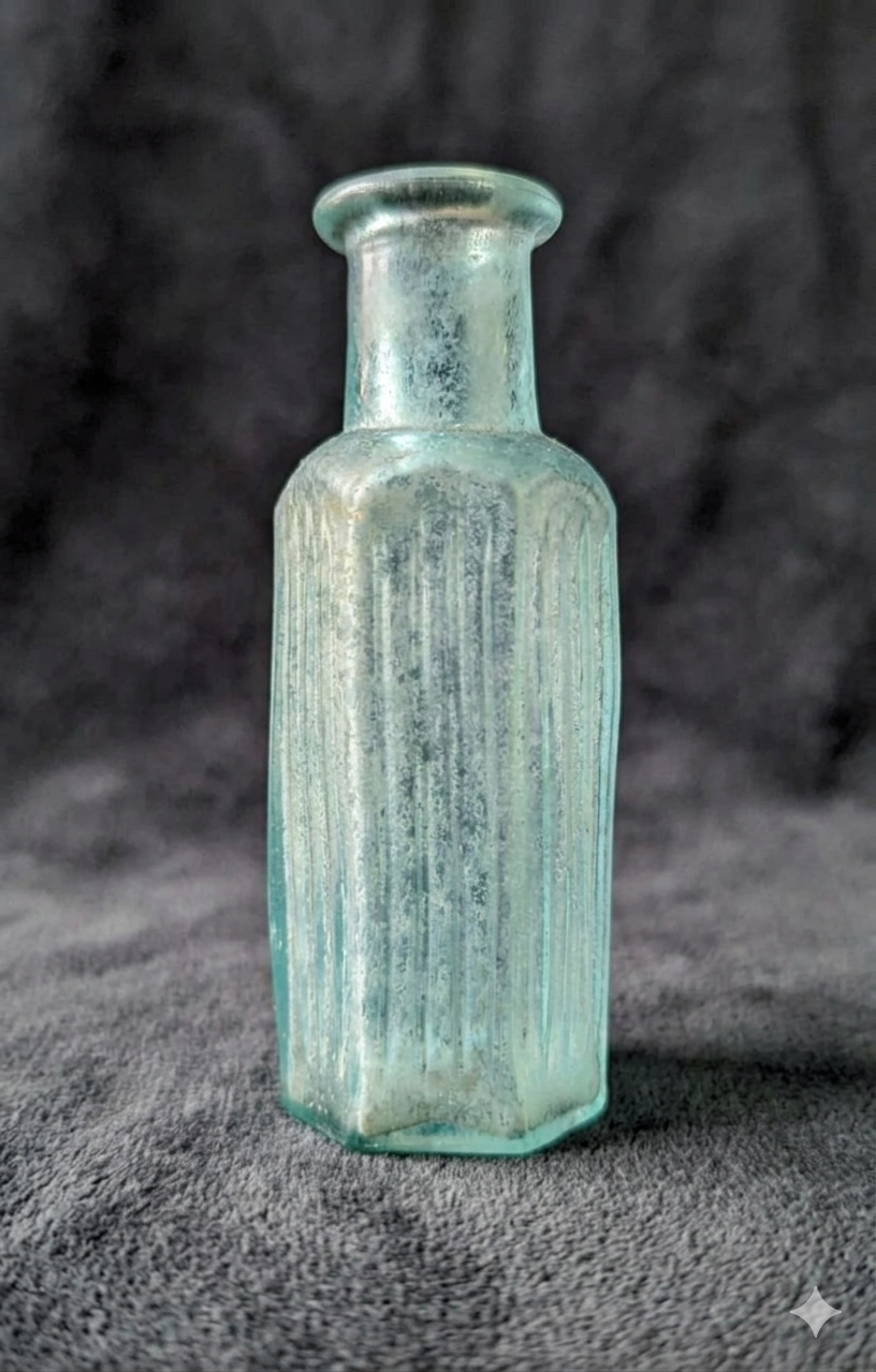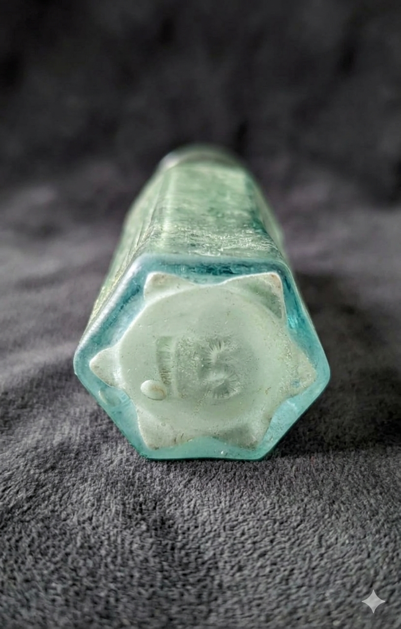 Cześć, znalazłem taką oto buteleczkę. Zdaje się, że na korek. Czy jest to opakowanie apteczne? Butelka jest dmuchana w formie, na dnie znajduje się oznaczenie pojemności. Krzywizna jest sppwodowana np. tym, że znajdowała się w ogniu czy tak niedbale takie pojemniki były wykonywane? Jeśli to możliwe, może mi podsuniecie przybliżone datowanie? Pozdrawiam, Łukasz.