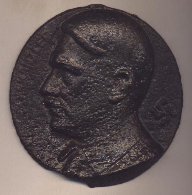 Bagneciarz Napisano 25 Lipiec 2004 Autor Napisano 25 Lipiec 2004 Cały głowy jest wypukły, przedmiot wykonany z żeliwa.Z lewej napis ...KANZLER. W miejscu kropek nie jestem pewien ale może FUHRER.Z prawej sfastyka.Po obwodzie 11.5 cm.Z tyłu nie widać gwintu do przykręcenia.Pozdrawiam. Bagneciarz
