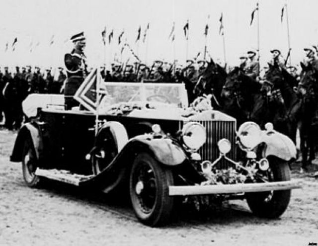 JoncaA Napisano 12 Wrzesień 2004 Autor Napisano 12 Wrzesień 2004 .... i Instrukcja" sankcjonuje znak juz uzywany, Na skanie Rolls Glownego Inspektora SZ. Proporzes jest prostokatny, w proporcji pewnie 5:7. Krotki bok ma pewnie mniej niz 0,5 m, ale i tak jest spory (warto pamietac, ze ten Rolls to duzy samochod) (przed frontem 11 puł, pewnie w 1938 roku.
