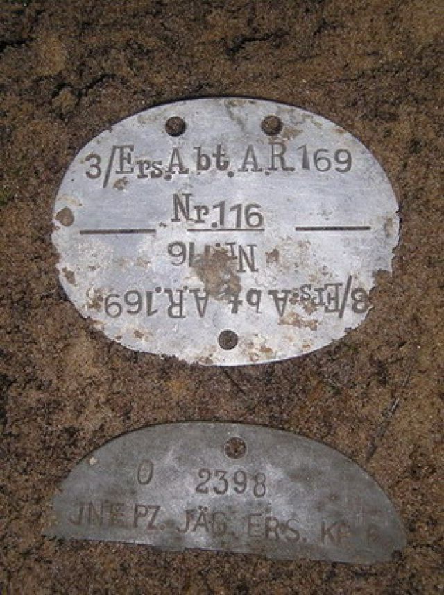ForsterGd Napisano 28 Styczeń 2006 Napisano 28 Styczeń 2006 i tak w pięknych okolicznościach przyrody takie tam póltora blaszki,cała 3/Ers.Abt.AR.169 Nr116 i połówka JNF.PZ.JAG.ERS.KP6 Nr 2398 grupa krwi 0