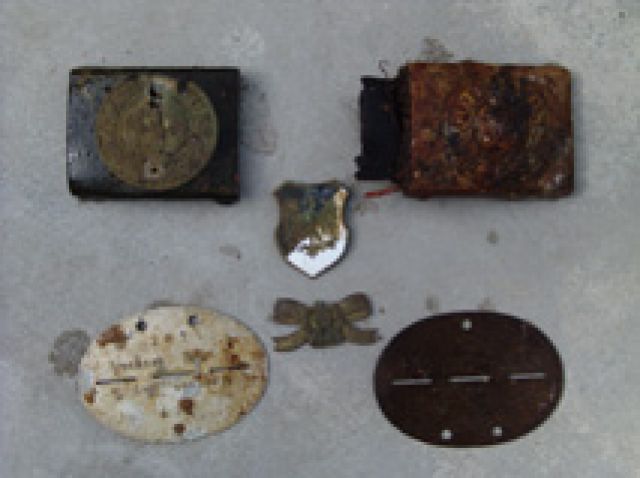 R51 Napisano 30 Styczeń 2006 Napisano 30 Styczeń 2006 Jak się chwalimy to się znowu dołącze. Wszystkie przedstawione na zdjęciu połówki nieśmiertleników pochodzą z jednego zrzutu i z niewielkimi wyjątkami stanowią przekrój oddziałów składających się na 7 DP. Zauważcie,że są to połówki z jedną dziurką, które zabierano" zmarłym żołnierzom. Co więcej każda blaszka spięta była spinaczem, do którego przypięta była kartka. Skrawek kartki leżący na blaszce zachował się w kilku przypadkach i udało się z niego wyczytać Grabmeldung"- ponad wszelką wątpliwość były to identyfikatory poległych żołnierzy zdeponowane w archiwum sztabu dywizji.