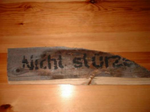 Wydaje mi się, że jest to część pokrywy do niemieckiej skrzyni na amunicję. Świadczy o tym napis NICHT STURZEN" co znaczy ie rzucać". Czy moje podejrzenia są słuszne?