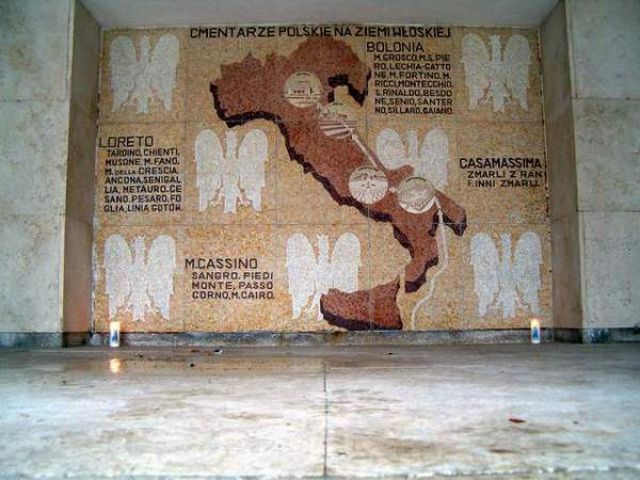 sqh Napisano 1 Lipiec 2005 Napisano 1 Lipiec 2005 A będąc już w Italii, warto zajechać także na największy polski cmentarz wojskowy w Bolonii (tuż obok jest także brytyjski). Byłem tam konkretnie w kwietniu i na 60. rocznicę bitwy malowali właśnie trawę na zielono. Na fotce - mozaika na ścianie krypty.