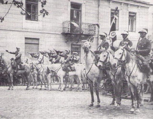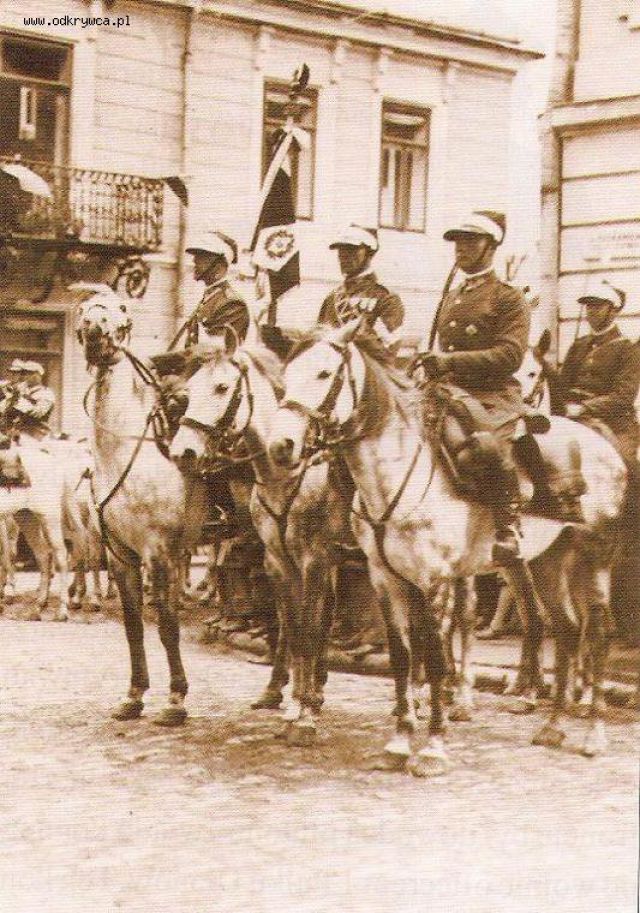 formoza58 Napisano 27 Grudzień 2016 Napisano 27 Grudzień 2016 Poczet sztandarowy w szyku konnym bez asysty przed budynkiem dowództwa pułku, w 1932 roku.