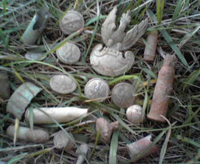 MaciekC Napisano 31 Październik 2005 Autor Napisano 31 Październik 2005 a to reszta drobnicy, łuski , zapalniki 1 wojenne i tylko 2 kuleczki (naszczęscie)ide lasem ,od czasu do czasu jakas łuseczka, pokazał sie okop , oo zaczynaja wychodzić łuseczki mosin, bedzie dobrze, po chwili zauważam resztki ogrodzenia. , hmmm przerywam kopanie i wchodze na ongis ogrodzony teren, nagle zauważam że otaczaja mnie mogiły, zarośnięte ledwo rozpoznawalne kształty, dalej na małej polance stoi głaz z napisem w języku niemieckim. cmentarz żołnierzy rosyjskich 1 wojenny. niesamowite uczucie. nie miałem go na zadnej mapie.za każdym razem gdy jestem na cmentarzu I wojennym dziwie sie kontrastowi w podejściu do przeciwnika wojska niemieckiego z I i II wojny. 1914-1918 tapfere rus kreeger --- 1940-45 małpy i świnie