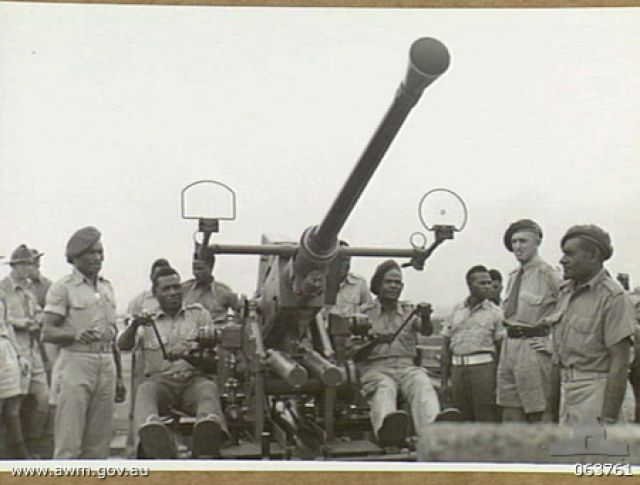 M-i Napisano 19 Październik 2005 Autor Napisano 19 Październik 2005 40 mm Bofors w Holenderskich Indiach Wschodnich, uzywany do walki z samolotami japonskimi. Obsluga w maskach przeciwgazowych