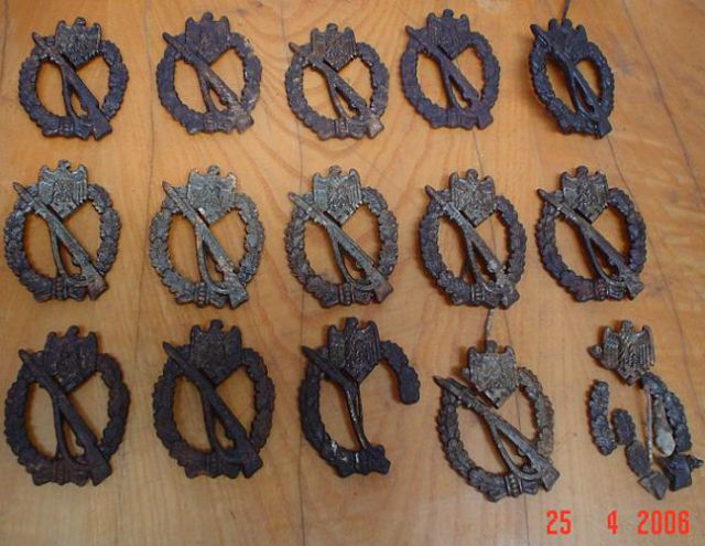 HU13ERT Napisano 26 Kwiecień 2006 Autor Napisano 26 Kwiecień 2006 I broszki po oczyszczeniu... I tu pojawia się pytanie: Teren i lokalizacja działań zdają się sugerować okrążenie. Czy za Infanteriesturmabzeichen była czapa" od Czerwonoarmistów?? Poza odznakami niczego nie było: Ani nieśmiertelników, ani innych odznak, ani jakiegokolwiek sprzętu.Pozdrawiam(y)Senior&Hubert