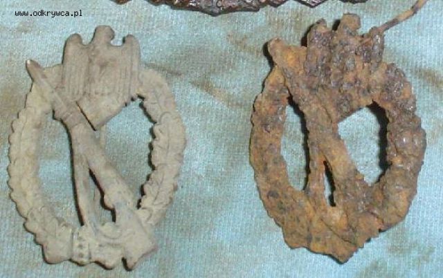 HU13ERT Napisano 2 Listopad 2006 Autor Napisano 2 Listopad 2006 Najpierw igiełka lupa i zza orła piasek wydłubałem.Potem pędzelkiem na sucho z kurzu i piachu przetarłem.Następnie po stomatologicznemu:szczoteczka elektryczna miękka z oliwką a na koniec prostnica dentystyczna z gumką do metalu z drobnym nasypem (nie ściera patyny a zbiera nagar, błoto i inne świństwa)Pozdrawiam.