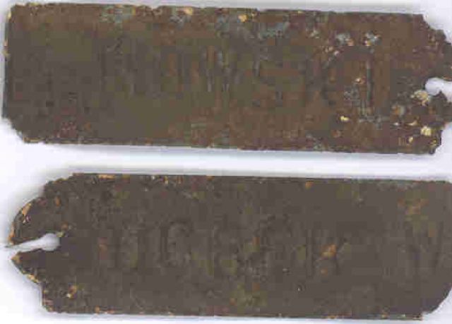 Znalezione na polskich pozycjach z 1939 (?) .Długość 4cm szerokośc 1,2 cm. Na jednej nazwisko : Elnowski, na drugiej : Ogiefr W.