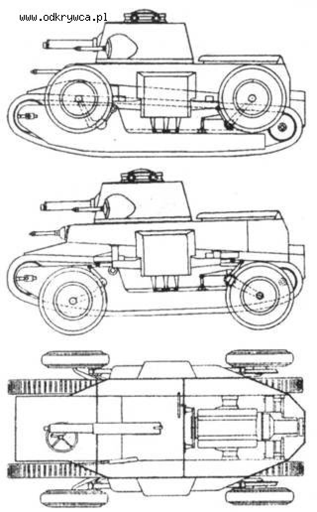 batta Napisano 25 Marzec 2009 Napisano 25 Marzec 2009 Ja jednak jestem przekonany że jest to pojazd szynowy , najpewniej elektrowóz opancerzony wz. 28. Obie rozłączne części tego wozu są ustawione obok siebie, jedna z wieżą działa 75mm, druga z wieżą działa 47mm.Zestaw jest pozbawiony pierwotnego pancerza zewnętrznego, więc 200 litrowy bak na ropę, który jest widoczny pod sponsonem jest niczym nie okryty.Masywne zawieszenie jest ewidentnie pojazdu szynowego a to co część z nas brała za gąsienice ja uważam za jakiś pas transmisyjny, napinany widocznymi na zdjęciach nastawami.Pojazd najpewniej posiadał silniki diesla oraz silniki elektryczne oraz nieznany mi sposób na szybkie łączenie się w zestaw i równie szybkie rozłączanie.Na sąsiednim wątku o broniach nie wdrożonych do produkcji w II RP można znaleźć zdjęcia elektrowozu wz.28 wraz z pancerzem, ale niektóre podobne elementy są wodoczne, np. otwór w ścianie czołowej ( tylnej ? ) oraz wystający sponson.