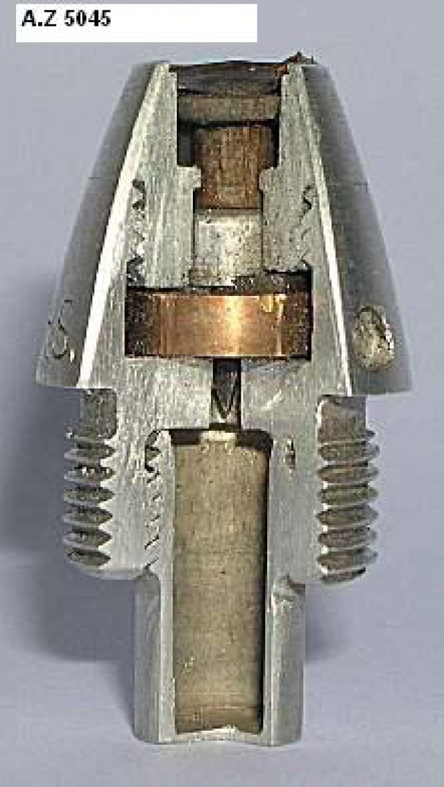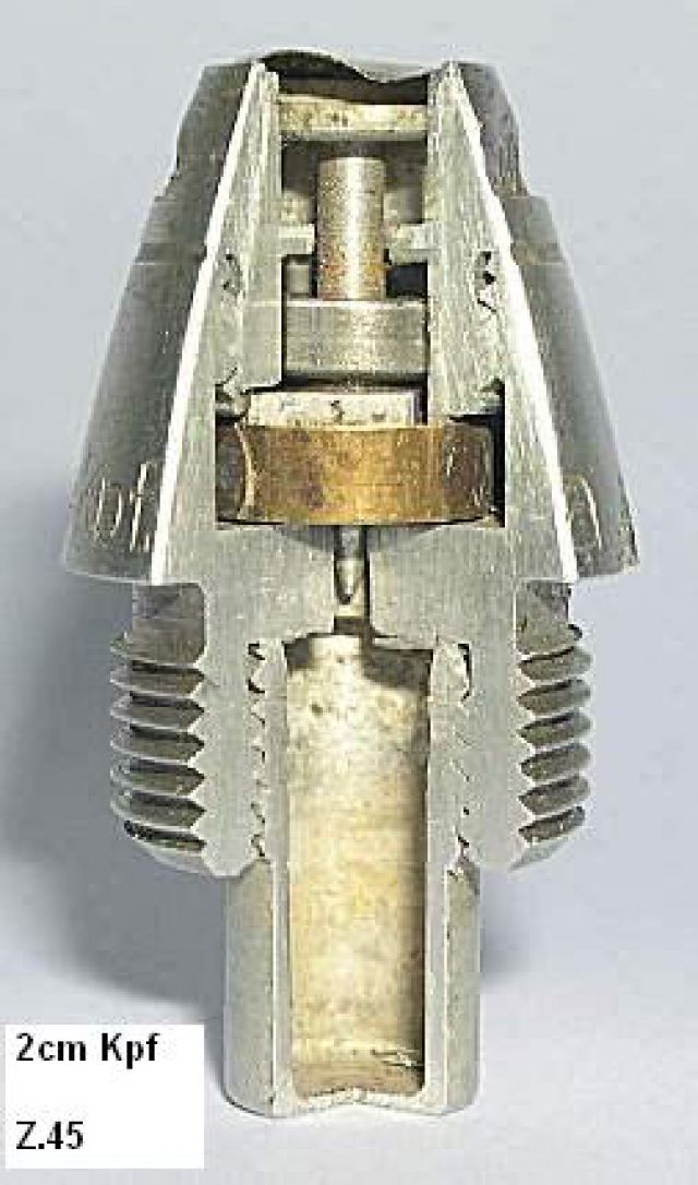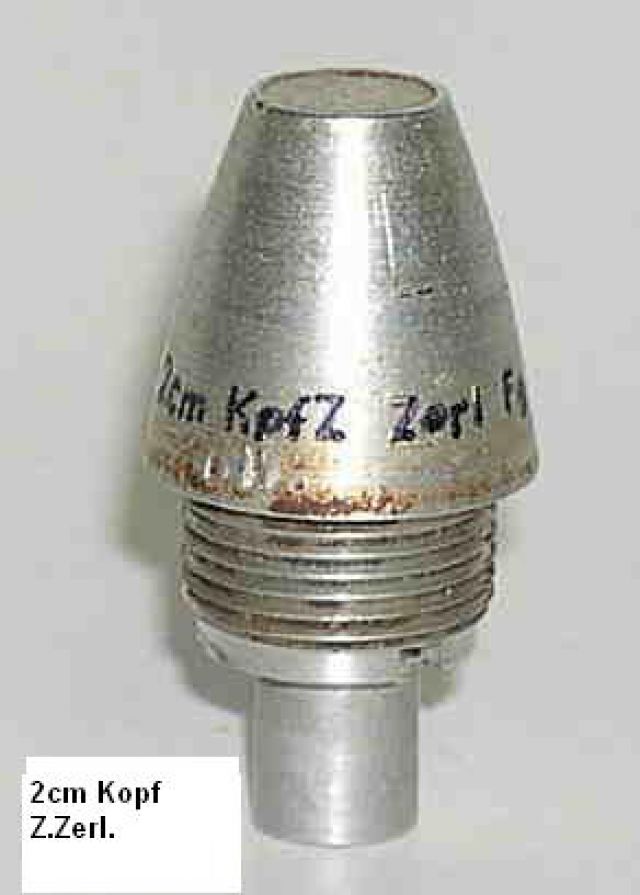 Loslau Napisano 3 Maj 2006 Napisano 3 Maj 2006 Co do syg. luski to ci niestety nie pomoge - to nie moja działka.(ale bicie KAM" na pocisku to HASAG-u ze Skarżyska - Kamiennej) co do zapalnika to w pociskach kal.2cm stosowano kilka odmian - wkleje fotki z nazwami.A co do typu pocisku, wszystko zalezy od malowania...np.żółty kolor pocisku - pocisk rozrywający.Niebieski - zapalający.czerwony pas nad pierścieniem - pocisk ze smugaczem.zielony pas pod zapalnikiem - pocisk z samolikwidacją.Pocisk czarny - p.panc...itd.Ale ma twoim zdaje się nie widac żadnych malowań" ??Pozdro.