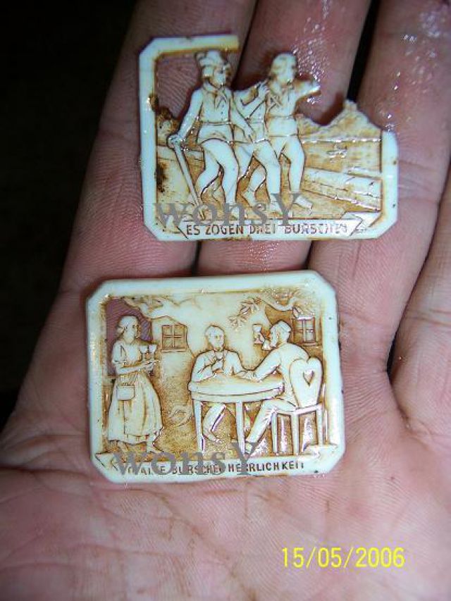 wons Napisano 17 Maj 2006 Autor Napisano 17 Maj 2006 Blaszki. Górna z biciami 1/L SCH.RGT. 350. Na uwagę zasługuje zaznaczona na czerwono wybita sfastyka. Pierwwszy raz się z czymś takim spodkaliśmy. Czy wie ktoś, co to oznaczało ?Dolna - samoróbka prawdopodobnie z pobliskiego oflagu.pozdr. wonsY