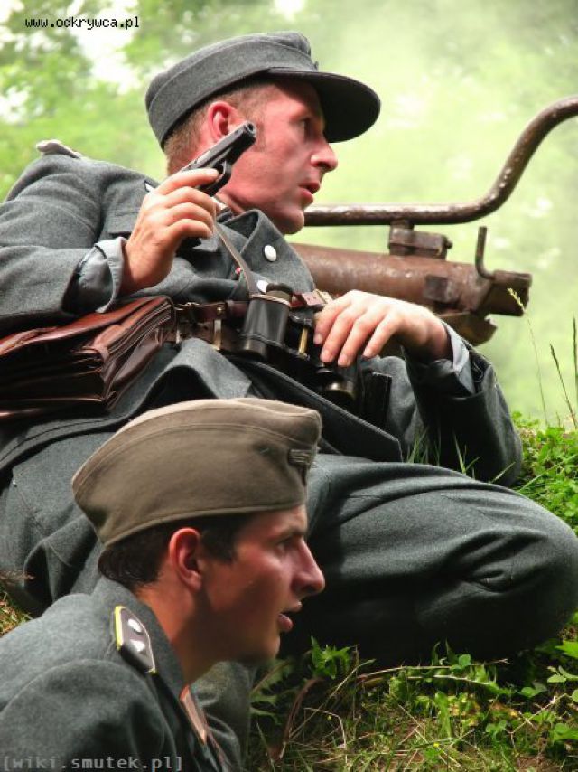 Hindus Napisano 19 Lipiec 2007 Napisano 19 Lipiec 2007 Dzisiaj znalazłem takie zdjęcie z omawianej w innym wątku imprezy i ręce mi po prostu opadły – „dobre reko” w najgorszym tego słowa znaczeniu!Majora w tle pomijam – komentowany już obszernie w paru wcześniejszych postach, ale „żołnierz” na pierwszym planie jest rewelacyjny.Długo się zastanawiałem co ta sylwetka przedstawia i myślę, że jest to chyba próba odtworzenia wschodniego ochotnika w służbie Wehrmachtu ;)Pomijam furażerkę z dederonu, pomijam kompletnie nieprzerobioną bluzę z „turkusgrau”, ale po prostu powaliły mnie patki i naramienniki Bundeswehry (z których nawet nie zostały usunięte „gwoździe” dystynkcyjne)!