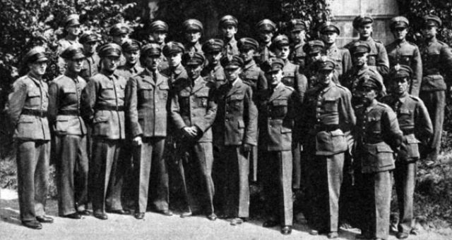 krzyhal Napisano 29 Sierpień 2006 Napisano 29 Sierpień 2006 Oficerowie i chorążowie lotnictwa otrzymali także lekkie wiatrówki z kołnierzem stojąco wykładanym do ubioru ćwiczebnego.Jako ilustrację pozwalam sobie wkleić fragment zdjęcia zamieszczonego na tym Forum w innym wątku. Kiedy pierwszy raz oglądałem to zdjęcie (dosyć pobieżnie) pomyślałem, że to nasz lotnik (w battle-dressie)z PSP w GB, zestrzelony gdzieś nad Europą i osadzony w Oflagu razem z oficerami z Września.Ale teraz zobaczcie i porównajcie sami...