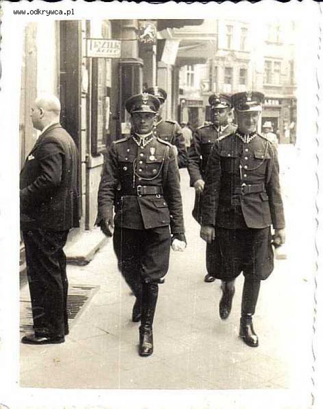 tomen Napisano 18 Styczeń 2007 Napisano 18 Styczeń 2007 Dzięki BERLINOWI trafiłem na forum i wątek http://www.lowyb.fora.pl/viewtopic.php?t=30 , a tam historia żandarmerii na pomorzu napisana przez TADEUSZA 660cytat:„Żandarmeria na terenie Pomorza tworzona była już od momentu wkroczenia na te tereny Armii Hallera. 5 lutego 1919 roku utworzono Dowództwo Żandarmerii Wojskowej przy OGen. Pomorze z siedzibą w Inowrocławiu, a następnie w Grudziądzu.Z poczatkiem 1920 roku po podziale całej żandarmerii na dywizjony, powstał na miejscu tego dowództwa Dywizjon żandarmerii wojskowej nr 8 w Grudziądzu z 4 plutonamiGrudziądz, Toruń, Kościerzyna, Starogard. Rozkaz ministra spraw wojskowych z 17 stycznia 1922 roku wprowadził pokojową dyslokację plutonów żandarmerii wojskowej. W skład dywizjonu powstałego przy Dowództwie Okręgu Korpusu VIII w Toruniu weszły plutony w Toruniu, Grudziądzu, Bydgoszczy, Włocławku, Tczewie, Chojnicach i Wejherowie. W wyniku dalszych zmian powstały w Pucku pluton żandarmerii został w 1926 roku przeniesiony do Gdyni, natomiast Puck ochraniano odtąd siłami posterunku. Nowa organizacja żandarmerii wprowadzona w życie 15 stycznia 1930 roku dostosowała liczebność oddziałów żandarmerii do faktycznych potrzeb w czasie pokoju. Wprowadzono trzy typy plutonów żandarmerii, przy czym ilość plutonów była różna w poszczególnych okręgach korpusów i różniły się one stanem ilościowym podoficerów i szeregowych. Gdyński pluton był plutonem III typu i liczył 10 podoficerów zawodowych i 12 szeregowych służby zasadniczej. W wyniku niewielkich zmian organizacji żandarmerii, spowodowanych po części przez sytuację polityczno-militarną Polski, a polegających głównie na tworzeniu nowych jednostek, doszło do przemianowania plutonu żandarmerii Gdynia na 1 Morski Pluton Żandarmerii. 1 czerwca 1937 roku utworzono zaś 2 Morski Pluton Żandarmerii w Helu, a do końca 1937 roku 3 Morski Pluton Żandarmerii przy dowództwie Floty na Oksywiu. Wszystkie te plutony weszły w skład Morskiego Dywizjonu Żandarmerii, którego dowódcą został major Władysław Herzog. Plutony organizacyjnie podlegały dowództwu Żandarmerii w Warszawie, służbowo zaś Dowódcy Floty na Oksywiu i Dowódcy Rejonu Umocnionego w Helu. W 1938 roku rozmieszczenie i struktura morskiej żandarmerii przedstawiały się w następujący sposób: - Morski Dywizjon Żandarmerii Gdynia Oksywie budynek nr 48 dowódca mjr Władysław HERZOG. -1 Morski Pluton Żandarmerii Gdynia Oksywie bud nr 42 dowódca por. Marian LITWINIAK. -2 Morski Pluton Żandarmerii Hel, ul. Wiejska 52a dowódca por. Bolesław ŻARCZYŃSKI. 1/ posterunek żandarmerii w Pucku. -3 Morski Pluton Żandarmerii w Gdyni ul. Morska 7, dowódca por. Adam KRZYWICKI 1/posterunek żandarmerii w Wejherowie. UMUNDUROWANIE Żandarmi morscy nosili zielone uniformy wojsk lądowych, z tą różnicą, że zamiast rogatywki nosili czapkę okrągłą z czerwonym otokiem i żółtą wypustką na obwodzie denka. Na czerwonych patkach munduru noszono kotwicę. Mam nadzieję, że podoba się mój wykład nie jest to praca własna korzystałem z publikacji i wspomnień. Ciąg dalszy nastąpi.”Dzięki powyższemu tajemnica okrągłej czapki wyjaśniona.Ciekawe, czy budynek Morska 7 to ten z mojego ostatniego zdjęcia?Może stoi do dzisiaj? Według przekazów rodzinnych, było to gdzieś w okolicach dworca.pzdr dla GRH LOW