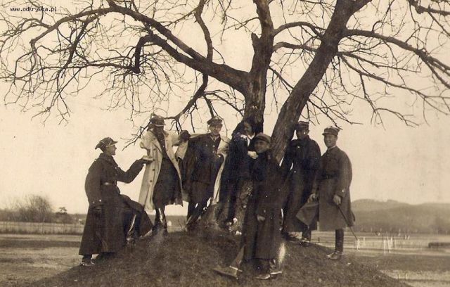 formoza58 Napisano 8 Grudzień 2016 Napisano 8 Grudzień 2016 Oficerowie pułku przy drzewie rosnącym na środku placu ćwiczeń w koszarach na Jałowcu.