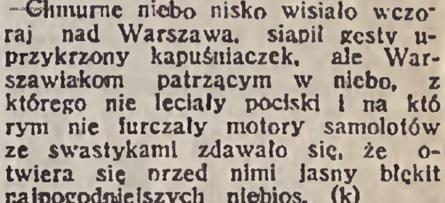 formoza58 Napisano 8 Styczeń 2018 Napisano 8 Styczeń 2018 Wspomnienie pogody, jakie było w dniu 19 września 1939 roku w Warszawie i okolicy.Argument przemawiający za tym, że Pułk szarżował pod Wólką Węglową w płaszczach.