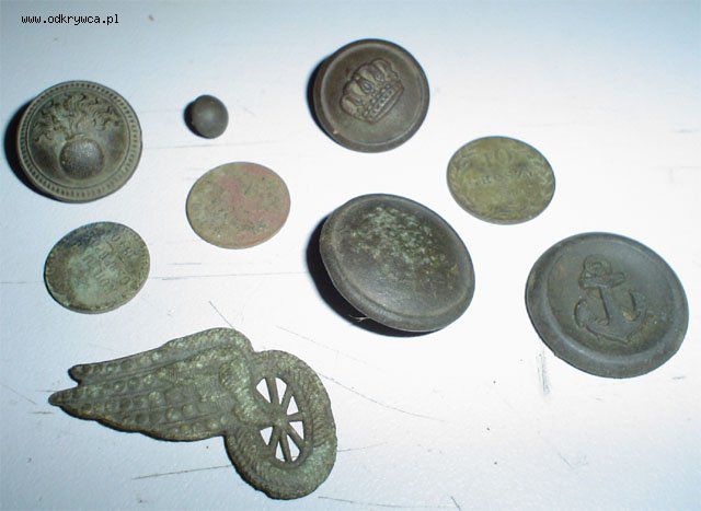 w@riat Napisano 15 Kwiecień 2007 Autor Napisano 15 Kwiecień 2007 Czołem. W tym wątku będę dawał zdjęcia tylko co ciekawszych rzeczy. Proszę ogólnie o identyfikacje jeżeli się mylę. A więc zaczynamy !Od lewej: - Francuski guzik granadierski (* P H * PARIS)- 1/4 kopiejki (1840)- Broszka? Odznaka? Kolejarza.- Malutki guziczek (naprawde mały) od mankietu.- 2 grosze (1923)- Prusaczek sygnowany.- Zwykły bez oznaczeń z tyłu napis (best quality)- 10 groszy (1840)- Marynarski (brak zadka ;) )A reszta to około 30 kalesoniaków, 20 od celty i inne.