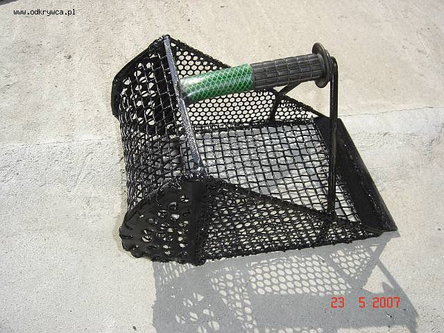 Raned Napisano 26 Maj 2007 Napisano 26 Maj 2007 Mówi się tutaj o dwóch różnych rzeczach; czym innego jest podbierak do szukania monet w piasku na plaży a zupełnie czymś innym do szukania w wodzie. Do szukania w wodzie potrzebne jest bardzo solidne narzędzie wykonane najlepiej ze stali nierdzewnej, odpowiedniej długości. Przedstawiam zdjęcie mojego podbieraka, który używam ok. 8 lat - długość 145 cm, dwuczęściowy w celu ułatwienia transportu. Był spawany już kilka razy ze wzgl. na duże siły, występujące przy wydobywaniu niektórych celów. W przeszłości używałem innych ale ten sprawdza się najlepiej. Wystarczy 1÷3 podebrań aby przedmiot był wydobyty. Wewnątrz dobrze przykleić 3-4 magnesy, aby nie mieć problemów ze wsuwkami do włosów i innymi drobnymi przedmiotami żelaznymi jeżeli szuka się wykrywaczem PI. Odradzam kupno podbieraków aluminiowych czy ze stali węglowej, jeżeli zamierza się szukać w morzu, ze wzgl. na działanie soli.Takie podbieraki dostępne są w wielu sklepach sprzedających wykrywacze w USA, Wielkiej Brytanii, Niemczech, Hollandi i innych. W Polsce niedostępne, ale dobry warsztat mechaniczny spawający nierdzewkę wykona takie zamówienie jeżeli dostarczy się rysunek i odpowiednio zapłaci. Koszt na zachodzie powyżej 100 - 130 euro + koszt przesyłki, spora inwestycja, ale warto.