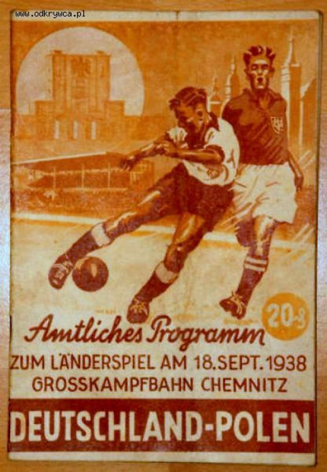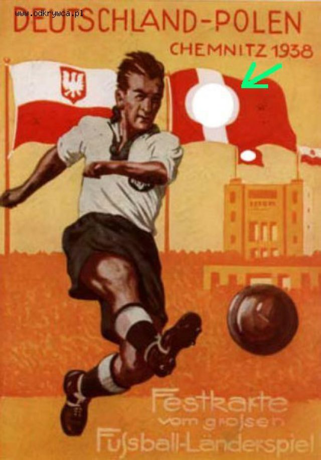 elpasys Napisano 19 Styczeń 2011 Napisano 19 Styczeń 2011 Niemiecka flaga na tej kartce dedykowanej meczowi Niemcy-Polska rzeczywiście jest dziwna, gdyż ulegała ewolucji, wymuszonej współczesną cenzurą w Niemczech.Przedstwiam tutaj wszystkie znane mi odwzorowania tej kartki pocztowej.Mecz rozegrano 18. września 1938, wynik 4:1 dla Niemiec, widzów 60.000.Więcej (nm):http://de.wikipedia.org/wiki/Liste_der_L%C3%A4nderspiele_der_deutschen_Fu%C3%9Fballnationalmannschafthttp://www.altes-chemnitz.de/chemnitz/sport.htmSkłady: http://www.fussballdaten.de/freundschaftsspiele/1938/deutschland-polen/