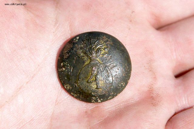 Tominew Napisano 4 Wrzesień 2009 Autor Napisano 4 Wrzesień 2009 Ostatnio trafił się taki oto guziczek, z płonacym granatem i 4 w środku. Czyżby 4 pułk?
