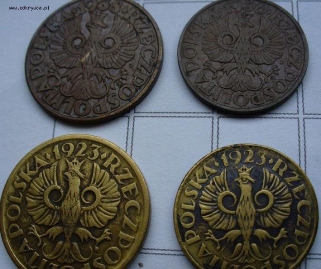 mecenas12 Napisano 27 Maj 2010 Napisano 27 Maj 2010 Co do monet z miedzi i brązu 2gr i 5gr to wrzucam zdjęcia, różnice widać i to od razu.co do tych monet -to moneta 5gr była bita ze stopów 1923 Brąz 350szt,Ni(nikiel)nakład nieznany, Ag(Srebro)-nakład 100szt, M-metal-nakład 10szt, Al-aluminium- nakład 15szt(1925r) oraz CuNi (1925)nakład nieznany i ilość również nieznana.te wszystkie monety to były monety próbne .Natomiast obiegowe były bite z miedzi (1923 rok) i pozostałe roczniki brązu -zarówno 2gr jak i 5gr.Natomiast 2gr z 1923 roku próbne były bite z brązu i Aluminium(nakłady nieznane).KaRaDo: co do 1gr z 1923r-obiegowa tylko brąz, próbne Brąz nakład 30szt, Metal nakład nieznany, Złoto nakład nieznany.pozdro