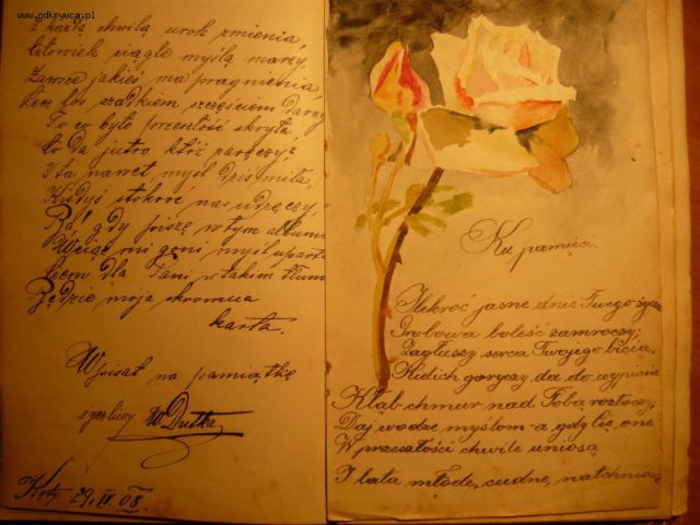 detek Napisano 28 Styczeń 2009 Napisano 28 Styczeń 2009 Kupione w antykwariacie lata temu, teraz odkurzone. Pamiętnik z wieloma wpisami, te dwa przykuwają uwagę:Wpis ułana w Kętach 20.02.1915 rokuMam nadzieję że się odczytacie