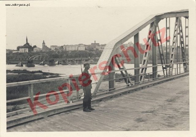 njorl Napisano 27 Styczeń 2008 Napisano 27 Styczeń 2008 Może i to się nada - jak by nie było to okolice późniejszego przyczółka.Widok na Sandomierz ze wschodniego brzegu Wisły. Wg opisu zdjęcie pochodzi z 1941 roku. Ciekawy jest most na pierwszym planie - wydaje się, że jest to most wybudowany przez Niemców (nie jest to most kolejowy, który leży dalej w dół Wisły). W tle widać most drogowy wysadzony w 1939 przez oddziały Grupy płk. Sikorskiego.Może ktoś wie co to za most?