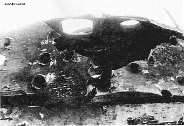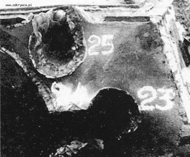 to17071990 Napisano 28 Styczeń 2008 Autor Napisano 28 Styczeń 2008 Przestrzelina 25 w czołowej płycie wieży. Trafienie pociskiem 88mm Pzgr40