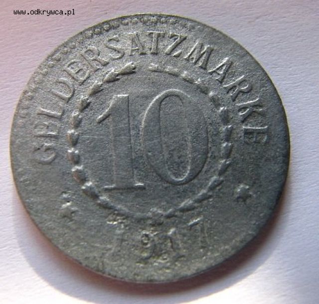 diabelski Napisano 18 Luty 2008 Napisano 18 Luty 2008 To K" w środku mnie zyliło, przynajmniej tak mi się wydaje że to K". Ale już kolega kopijnik2 naprawił błąd.To przed 1 pensem to 10 fenigów z Poznania o nakładzie 1000080 szt.a dziesiątak wyżej to zastępcze 10 marek dla powiatu Żnin.