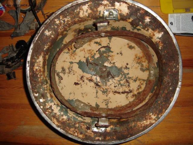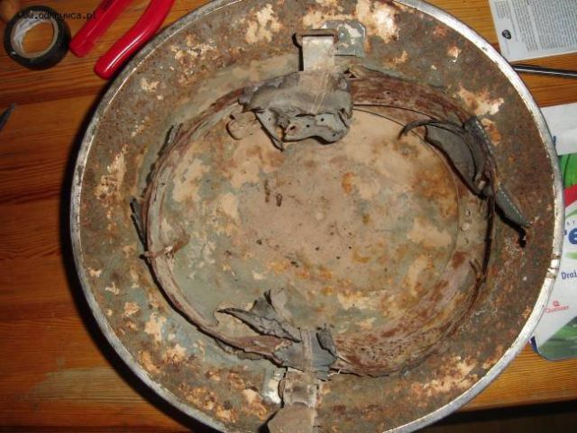 Czarek Napisano 14 Maj 2008 Autor Napisano 14 Maj 2008 po zdjęciu wszystkiego i obejrzeniu obręczy-ah te aluminiowe łączniki pod paski podpinki zdradziły wszystko-okazało się że jest to hełmik brytyjski który jakimś cudem dostał się do Pakistanu(najpewniej z Indii)a potem wykorzystując polski eksport na B;liski Wschód został wyposażony w obręcz i wyposażenie wewnętrzne polskie 50tki:)