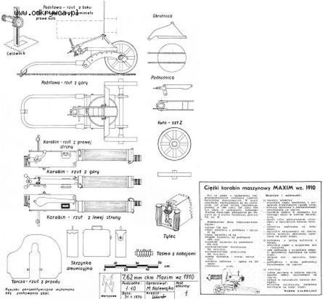 lina_90 Napisano 4 Październik 2008 Autor Napisano 4 Październik 2008 Witam Kolegów! Chciałbym się podjąć wykonania repliki maxima wz1910 produkcji rosyjskiej. Prosiłbym w miarę możliwości o podanie mi wymiarów zaznaczonych na poniższym zdjęciu. Oczywiście plus minus cm. CHodzi mi o takie ogólne wymiary ponieważ ma to być rekwizyt do filmu. Prosiłbym o pomoc, dokładniejsze zdjęcia, plany techniczne. Wszystko po prostu z góry mile widziane :)pzdr