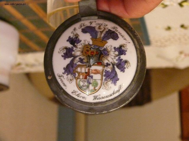 Witam. Proszę o pomoc w identyfikacji kufla który od jakiegoś czasu jest użytkowany w rodzinie. Może ktoś spotkał się z tym herbem i pomoże w identyfikacji pierwotnego właściciela. Z góry dziękuję.