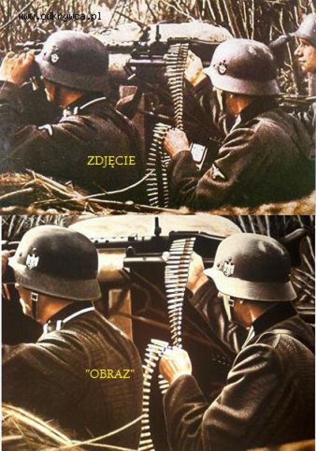Piett Napisano 23 Grudzień 2008 Napisano 23 Grudzień 2008 Fakt ciekawy zbiorek, nie ma co:)Ale co do wątpliwości że on obrabia te foty to rozwiązuje porównanie jego dzieła". Na jednym rysunku - oficer Wh odznacza żołnierzy za kampanię w Polsce. Jakoś znajome wydało mi się to zdjęcie, szybko poszperałem i miałem racje. W oryginale już nie WH, tylko Sepp Dietrich i jego pułk SSLAH zaraz po kampanii francuskiej.Grafoman, w miarę jako tako przerysowujący/obrabiający zdjęcia z epoki i robiący je za swoje dzieła i tyle:).Mimo wszystko że zgodzę się że portal NK nie powinien kojarzyć się z tego typu formy promowania się, nie ważne czy na rysunku byliby Niemcy, Rosjanie, Brytole i td. To nie tutaj. Mimo wszystko troszkę (niewiele podkreślam, ale...) przesadzamy z bulwersowaniem się e ktoś rysuje Niemców. Czy na przykład bulwersujemy sie jak ktoś czyta książki o WH i W-SS, albo gdy modelarze robią niemieckie pojazdy i wojska, robiąc z nimi efektowne dioramy i td. W tym tempie do rzucenia się z bluzgami na rekonstruktorów wbrew pozorom już niedaleko:). Ale podkreślam - ten przypadek i w tej formie nie uznaję za zbyt normalny:).