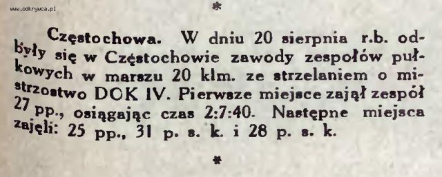 anroman Napisano 19 Styczeń 2020 Napisano 19 Styczeń 2020 witam na forum, bardzo ciekawy temat. Z dzisiejszego punktu widzenia nastąpił znaczny postęp w zakresie odkrywania i upamiętniania historii 7 dp i 27pp i działań wojennych w obronie Częstochowy w stosunku do tekstów z pierwszych postów tego wątku, nie będę wieć tego rozwijał, natomiast interesują mnie takie wątki: - gdzie stał pomnik Pułaskiego ? - 26 pluton obserwacyjny w Zarębicach - proszę o wszystko o nim -zdjęcia z lotniska Kucelin - j/w Jeśli chodzi o artylerię plot, to mam takie informacje, że w sierpniu 1939, tuż przed wybuchem wojny, kiedy na lotnisko Kucelin ściągnięto z Krakowa trzy samoloty myśliwskie, jeden pluton plot z baterii również został "zainstalowany " na lotnisku. 31.08 samoloty odleciały a pluton wrócił do Cz-wy. Jeden pluton ponoć był ulokowany w centrum- w okolicach katedry(?). - obok lotniska Kucelin, po drugiej stronie drogi do Olsztyna , w lesie, znajdowały się magazyny broni i amunicyjne 7 dywizji , zwane wówczas prochownią. Wg informacji świadków, magazyny te nie były podczas wojny zagospodarowane przez nikogo, tzn ani przez Niemców ani przez podziemie, ponieważ pod koniec wojny i zaraz po wojnie znajdowały się tam olbrzymie ilości amunicji i broni w b.dobrym stanie. miejscowa młodzież próbowała penetrować te magazyny, co groziło poważnym konsekwencjami.