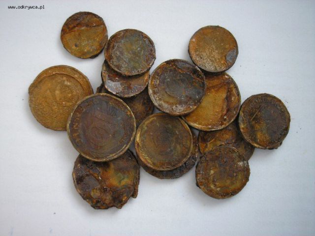 Arbi1000 Napisano 21 Luty 2009 Autor Napisano 21 Luty 2009 Dawno temu, kiedy u nas na półkach sklepowych stał tylko ocet, przywiozłem z RFN używaną pralkę automatyczną.Wysłużyła się również u mnie ale i na nią przyszedł czas.Potrzebny był mi taki silniczek więc ją rozbroiłem a w bębnie taki skarb".Szkoda, że pralki automatyczne wymyślono tak późno.