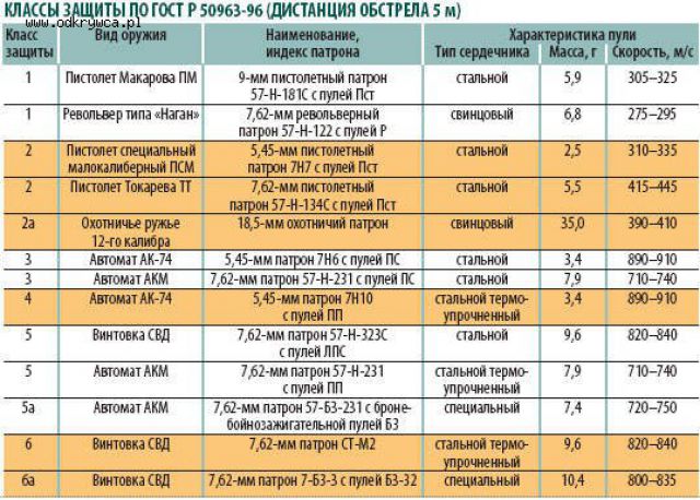 kopijnik2 Napisano 27 Luty 2009 Napisano 27 Luty 2009 klasy obronności(ochrony) wg parametrów pocisku i typu broni