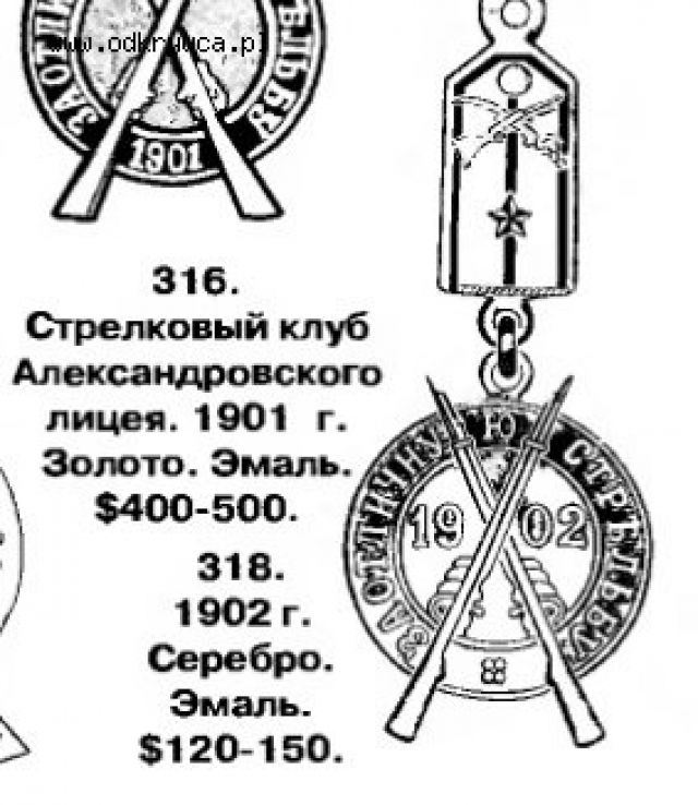 Witam wczoraj wyszła ta odznaka ,trochę wiem na jej temat, wiem że jest popularna i była nadawana za wyniki w zawodach strzeleckich w armii carskiej razem z pamiątkowymi zegarkami w komplecie a także w różnych odmianach w zależności od zajętego miejsca.Jednak jest często spotykana o wiele częściej zapewne od owych zegarków więc podejrzewam że była także nadawana sama bez kompletu i w innych okolicznościach czy ktoś mógłby odnieść się do tej hipotezy i przybliżyć bardziej historię tej odznaki ?