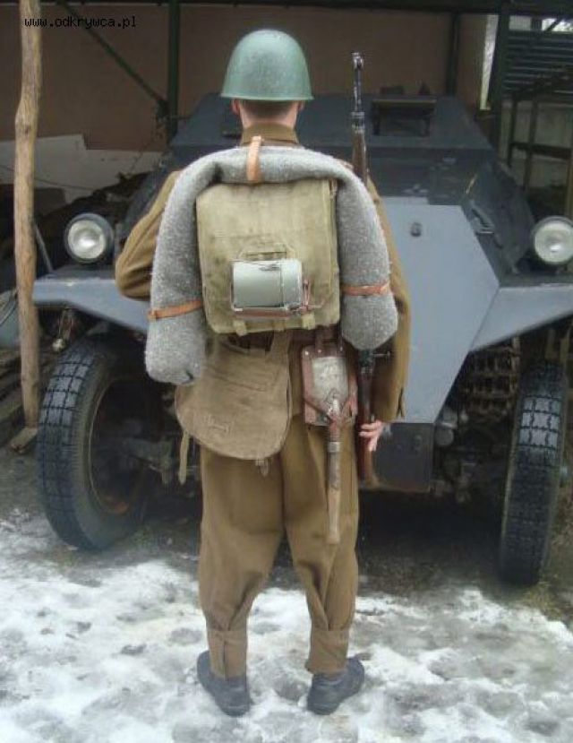 ArturSz Napisano 13 Październik 2016 Napisano 13 Październik 2016 Tytułem uzupełnienia tematu wątku podaję najpopularniejszą w międzywojennym Wojsku Polskim metodę rolowania i troczenia koca wojskowego:http://cytadela.aplus.pl/forum/viewtopic.php?t=2761Przypomnieć też wypada iż koc na tornistrze troczono do ubioru służbowego ( służba garnizonowa) oraz w przypadku ubioru polowego - do polowego ćwiczebnego oraz przy polowym mobilizacyjnym w okresie zimowym, gdy okryciem wierzchnim żołnierza był płaszcz. W 1939 roku do ubioru polowego mobilizacyjnego zgodnie z należnosciami wojennymi koc stawił posłanie i pakowano go w tornistrze, natomiast na tornistrze troczono płaszcz sukienny, który stanowił okrycie wierzchnie w przypadku chłodów lub okrycie na noc podczas biwaków.Tak wiec odtwarzając ubiór polowy mobilizacyjny z września 1939 roku na tornistrze troczymy nie koc, lecz zrolowany płaszcz, taki był bowiem standard i norma co doskonale widać na kilku powyższych fotkach archiwalnych.Koc troczymy w przypadku służby garnizonowej bądź polowej - ale tu w przypadku ćwiczeń czasu pokoju.